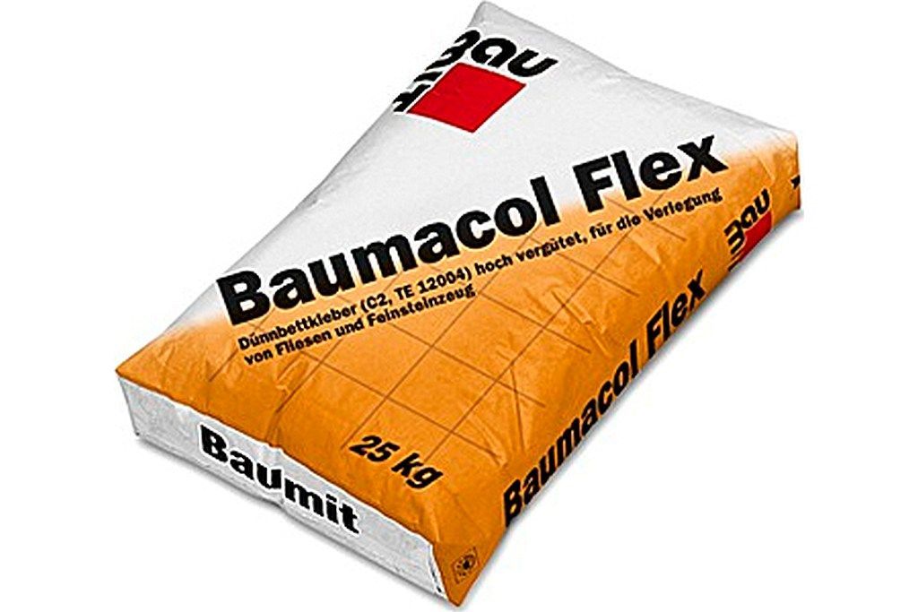 • Клей для всех видов керамической плитки, керамогранита, каменных плит на сложные поверхности Baumacol Flex